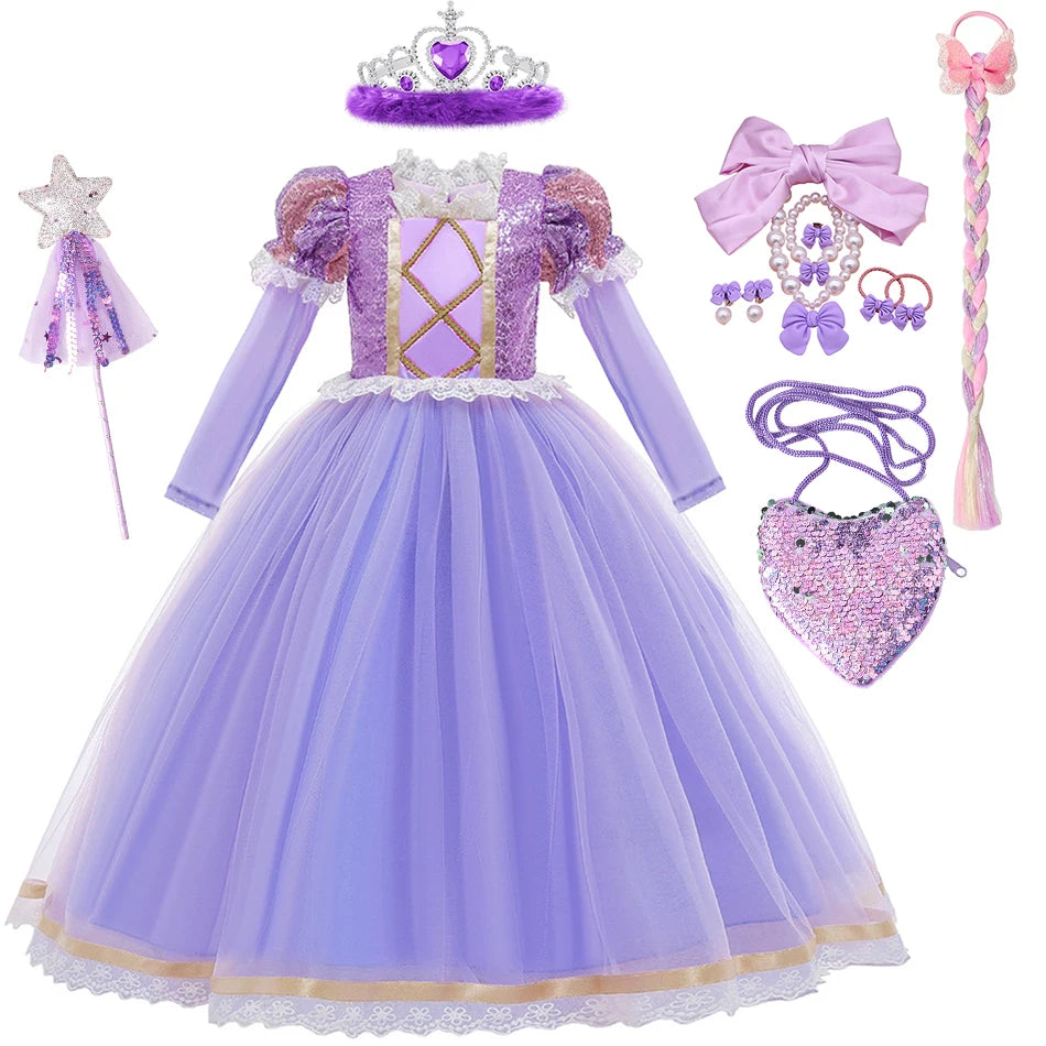 Cansada de fantasias sem graça? Deixe a magia dos longos cabelos da Rapunzel inspirar a sua pequena com este vestido de luxo! Este deslumbrante vestido de princesa é feito com Tecidos de Alta Qualidade, um forro confortável de Algodão e uma saia volumosa de Tule. O corpete é decorado com Paetês brilhantes e detalhes em patchwork, garantindo que sua filha brilhe em qualquer ocasião, seja em uma festa de aniversário, no Carnaval ou no Halloween. É o presente ideal para que crianças de 2 a 10 anos realizem seus sonhos de princesa.